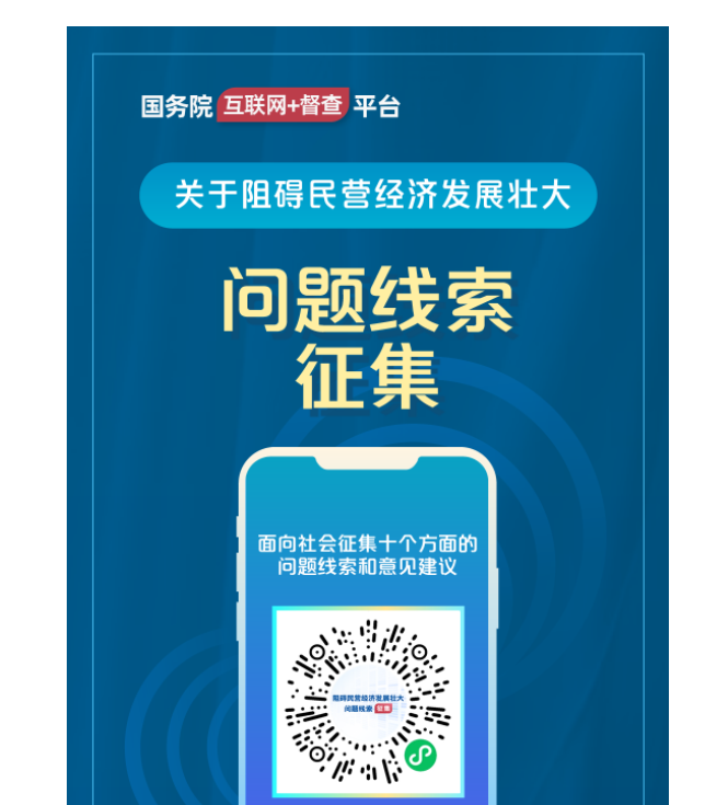 國務(wù)院“互聯(lián)網(wǎng)+督查”平臺公開(kāi)征集阻礙民營(yíng)經(jīng)濟發(fā)展壯大問(wèn)題線(xiàn)索