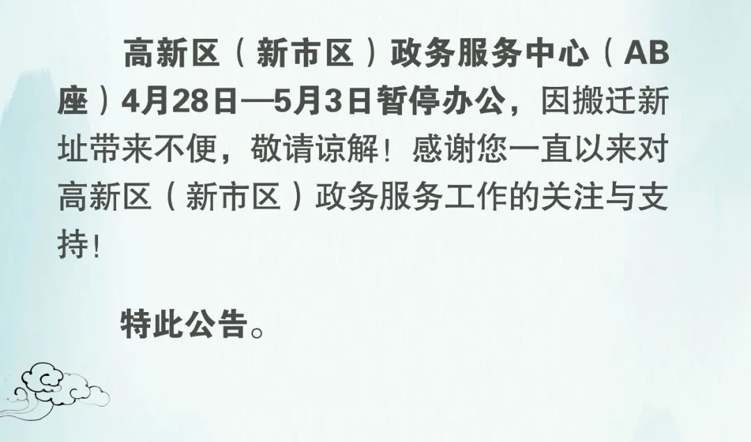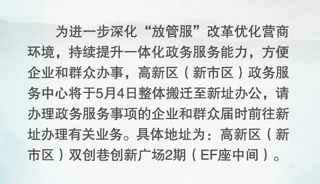 【公告】高新區(新市區)政務(wù)服務(wù)中心搬遷新址公告